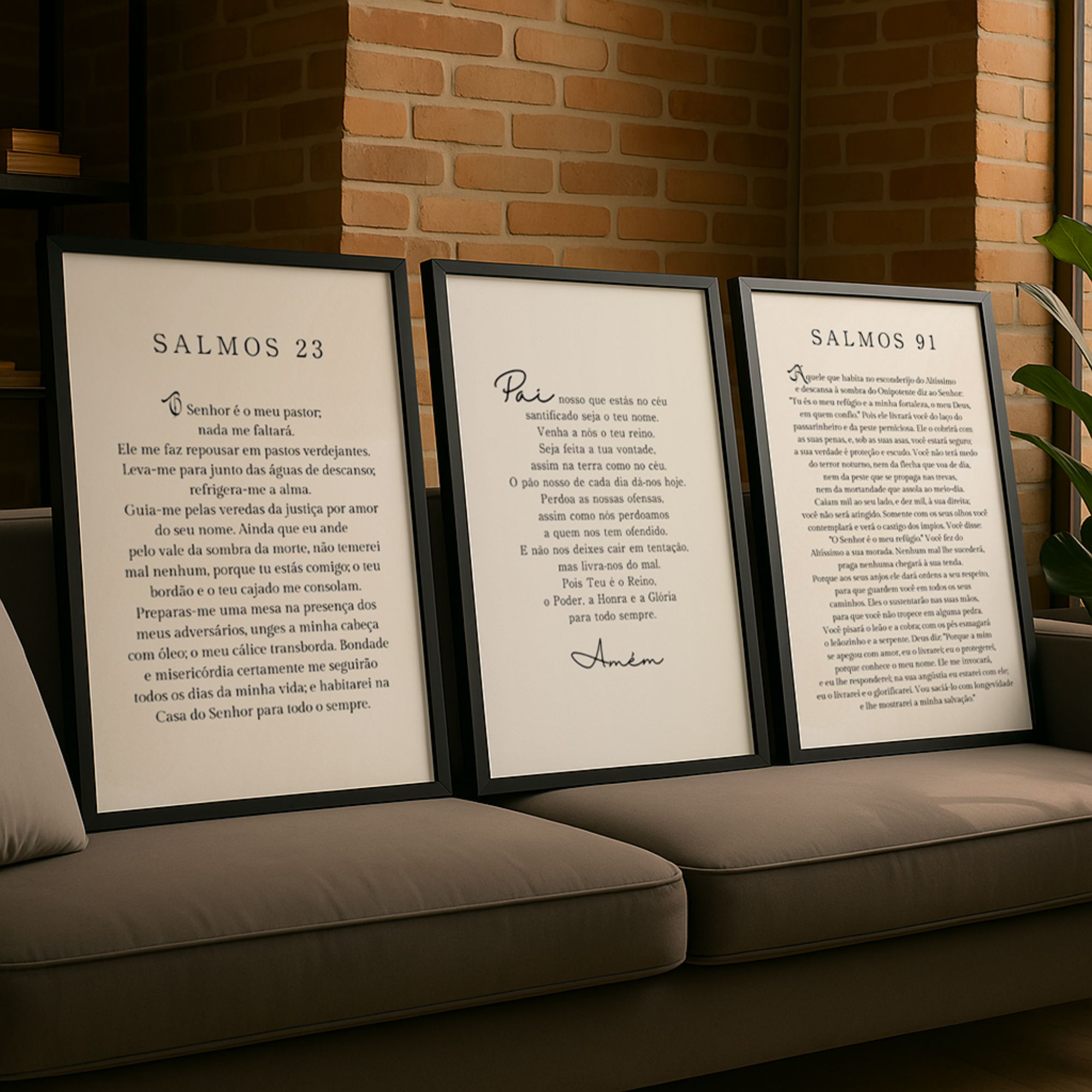 O kit com os quadros Pai Nosso, Salmos 23 e Salmos 91 reúne as orações mais poderosas da Bíblia para quem deseja criar um lar cheio de fé, proteção e presença divina. Com visual minimalista e acabamento sofisticado, esses quadros são perfeitos para transformar seu espaço com propósito e espiritualidade.